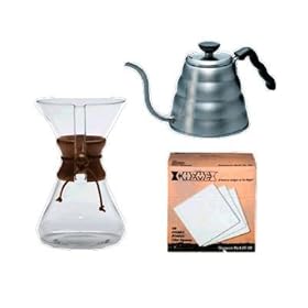 Chemex 8 Cup Coffeemaker, Hario Buono Kettle, & Chemex Filters Package