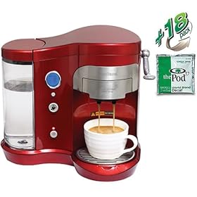 SunCafe Coffee Pod Brewer H701A - Red (includes 18 World Blend Decaf Pods)