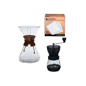 Chemex 8 Cup Coffeemaker, Hario Skerton, & Chemex Filters Package