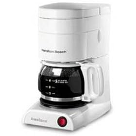 This review is from: Hamilton Beach Aroma Express 5 CupThis coffee maker makes coffee, but it also makes a huge mess. It is practically impossible to pour the coffee into your cup without getting almost as much on the kitchen counter! I think it is the extra wide spout and the reason they give you 5 cups instead of 4 in the pot. This spillage also happens when pouring the water into the reservoir. Also, it you remove the carafe during brewing, it is not drip free. It will dribble and splash against the coffee maker. The coffee making is fairly quick and quiet. I prefer my old coffee maker that had a slide out basket and a pot that was easier to deal with....This review is from: Hamilton Beach Aroma Express 5 CupI have owned this Hamilton Beach Aroma Express 5 Cup Coffee Maker for five years. I make at least one batch of Coffee every day. It has become part of my family. I will do a PROS & CONS type of review.PROS:Brews at a Higher temperature than most household coffee makers. 185 degrees F measured at the spray head.Hotter initial serving temperature than most household units. Barely sip able when first brewed.Fairly easy to clean up. Capacity of 25 ounces/5 cups at 5 ounces each is about 5 ounces more than most of it's competitors which are usually 20 ounces/4 cups. You can do the math, but it is about 2 and 1/2 10 ounce mugs.Fairly fast brew time. About 9 minutes from the time I hit the start button until the time it stops dripping.Takes regular size 8 to 12 cup paper filters or 4 to 6 cup paper filters if you can find them. I prefer the regular size unbleached/brown/natural paper filters. I think they impart less chemical or paper flavor than the bleached white filters. Since the coffee is brewed at a fairly high temperature I think that more flavor compounds are extracted from the grounds to produce more flavor than average/lower brewing temperature units. One of the first things I noticed when switching to this coffee maker from my 4 cup Mr. Coffee was the increase in the coffee aroma while brewing. I thought Aroma Express was just a name, but the Aroma Express actually produces more aroma and faster coffee than my 4 cup Mr. Coffee. The small size of this unit is ideal for a kitchen with very limited counter space or a dorm room. I see the prices are now up to at least $19 now which is still a good value. I purchased mine from Wal-Mart in 2004 for $14.95 plus tax.CONS:You need to pour the decanter/pot very slowly or the contents will leak out around the decanter lid and make a mess especially when the decanter is full. It is a good idea to flip open the lid when decanting weather pouring water while filling the reservoir or pouring brewed coffee into your mug. I try to pour it slow, but I find a paper towel comes in handy. Do not fill up to the max fill level indicated inside the reservoir. Fill it about 1/4 inch short of the max fill line. If you fill to the max fill line you will end up with water on your counter top. The filter basket is slightly cumbersome to remove and replace. Do not drop the fill basket. it will crack fairly easily. I dropped mine and it broke off the bottom hole that helps it to hinge on the unit. It makes it easier to remove and replaced the filter basket now, so I have mixed feelings about it braking. The spring activated stopper for the sneak a cup feature will still leak a few drops when the brew pot is removed. It will burn on the heating plate and create a unwanted burnt coffee aroma. It will also cause the brew pot to stick to the heating plate and continually remove portions of the non-stick coating on the heating plate. This can be reduced if you wipe off the heating plate before replacing the brew pot. I rotate the brew pot via the handle before removing the brew pot from the unit to brake the pot loose from the heating plate in case it sticks. My filter basket often tips forward slightly while brewing. I try to straighten it up to keep level and so the coffee grounds get an even exposure to the hot water, but it seems to sneak back out. SUMMARY: If I wanted to spend less than $20 and or I only had a small space for a coffee maker, I would buy this Hamilton Beach Aroma Express 5 Cup Coffee Maker again. If money and space was not an object I would purchase a $245 Technivorm KBTS(32oz) or a $265 Technivorm KBT(40oz) coffee maker....This review is from: Hamilton Beach Aroma Express 5 CupOther reviewers have complained about spillage or dripping with this product. I didn't encounter these problems. This is a small coffeemaker! It only makes five, 5-oz cups of coffee. If you make a full 25-oz pot and then move it quickly, you'll spill some coffee. The same goes for filling the water chamber to make coffee. If, on the other hand, you realize you're dealing with a small, full pot and act accordingly, you won't have any problems. It does exactly what it's supposed to do. It makes small amounts of good coffee quickly and easily. For under $15, what more can you ask for....